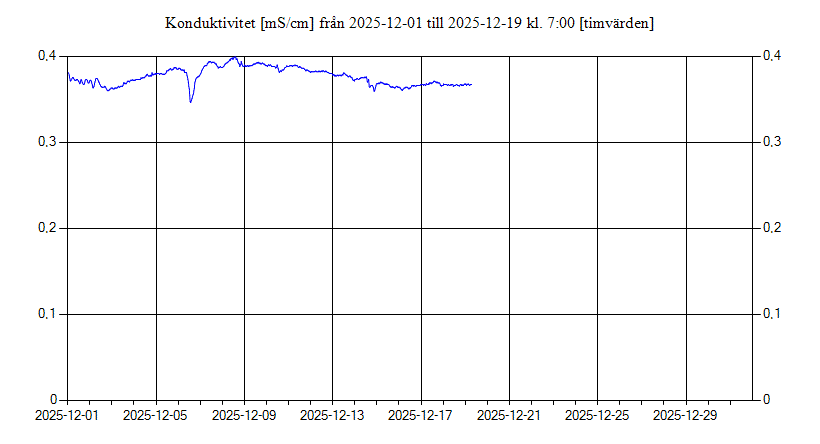 Konduktivitet i Fyrisån uppströms Islandsfallet vid pumphuset, Uppsala för december 2025