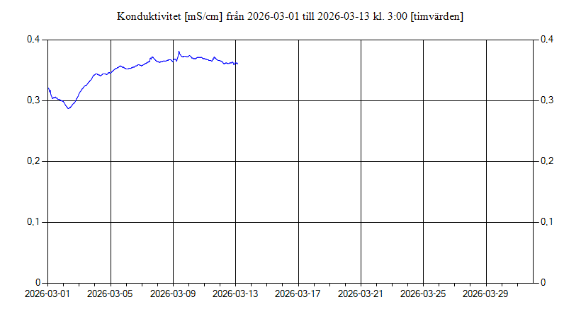 Konduktivitet i Fyrisån uppströms Islandsfallet vid pumphuset, Uppsala för mars 2026