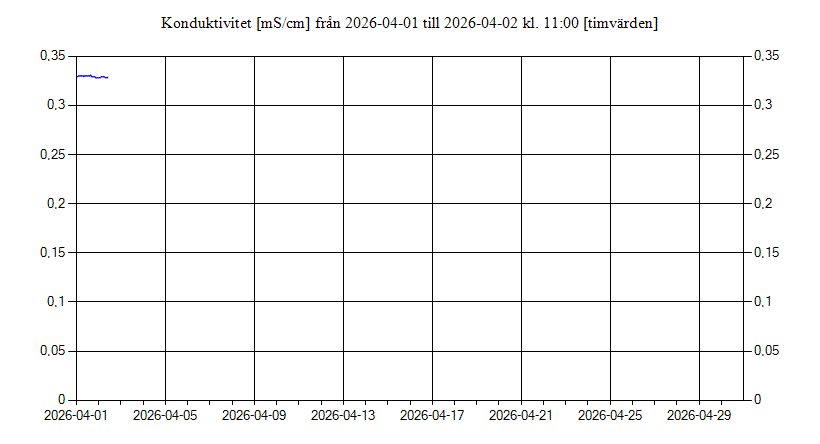Konduktivitet i Fyrisån uppströms Islandsfallet vid pumphuset, Uppsala för april 2026