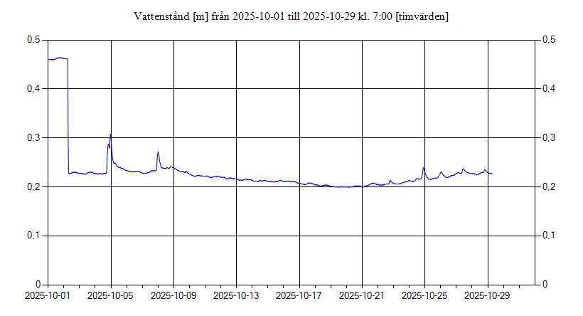 Vattenstånd i Fyrisån uppströms Islandsfallet vid pumphuset, Uppsala för oktober 2025