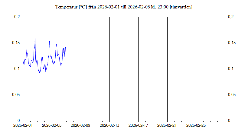 Vattentemperatur i Fyrisån uppströms Islandsfallet vid pumphuset, Uppsala för februari 2026