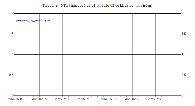 Turbiditet i Fyrisån uppströms Islandsfallet vid pumphuset, Uppsala för februari 2026